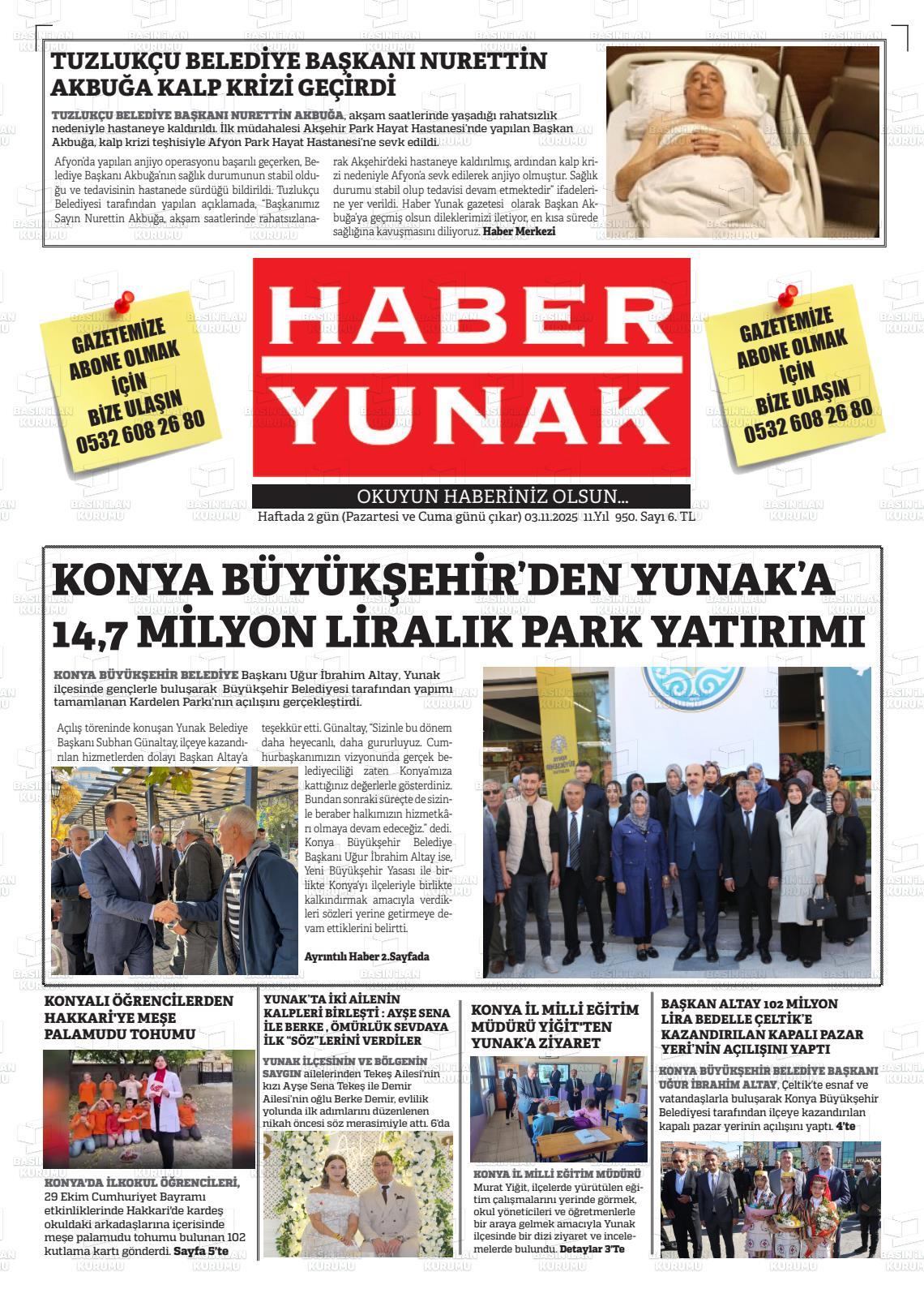 Konya Yerel Gazeteleri 03 Kasım 2025, Pazartesi Günü Manşeti