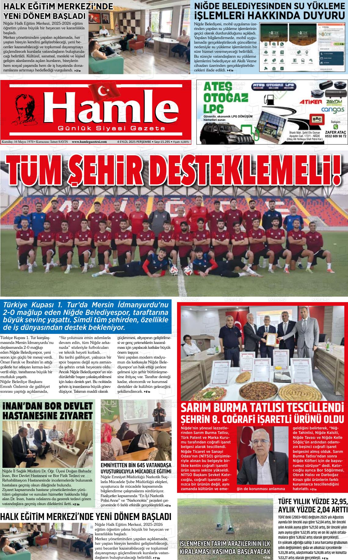 Nİğde Yerel Gazeteleri 03 Kasım 2025, Pazartesi Günü Manşeti